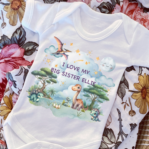 Personalised Baby Sleepsuit Baby Vest, I Love My Mummy Daddy Auntie, Dinosaur Design, Baby Shower Gift,