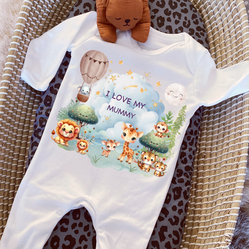 Personalised Baby Sleepsuit Baby Vest, I Love My Mummy Daddy Auntie, Safari Animal Design, Baby Shower Gift, Custom Safari Baby Outfit, Elephants Tigers Lions